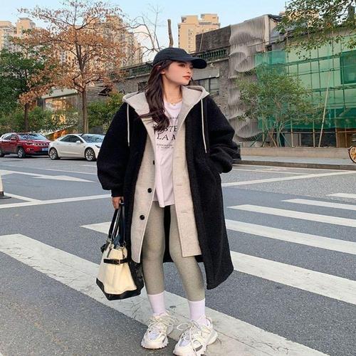 [셀럽하우스]여자 KSBT2742 3컬러 겨울 후드 일체형 뽀글이점퍼 양털롱코트