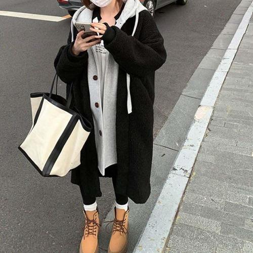 [셀럽하우스]여성 AHFS0648 뽀글이 후드 롱코트 양털 후디 단추 후리스코트