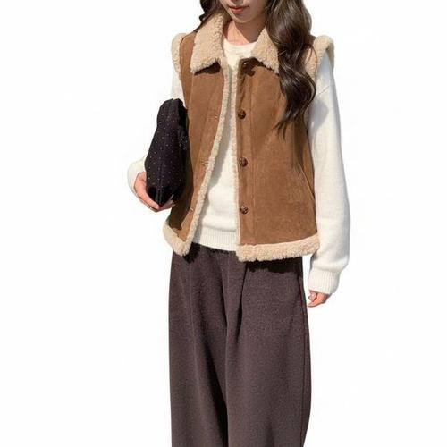 [옷자락]여자 겨울 따뜻한 데일리 레이어드 양털 카라 무스탕 조끼