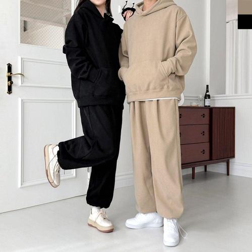 [옷자락]여성 겨울 양털 후드집업 와이드팬츠 세트