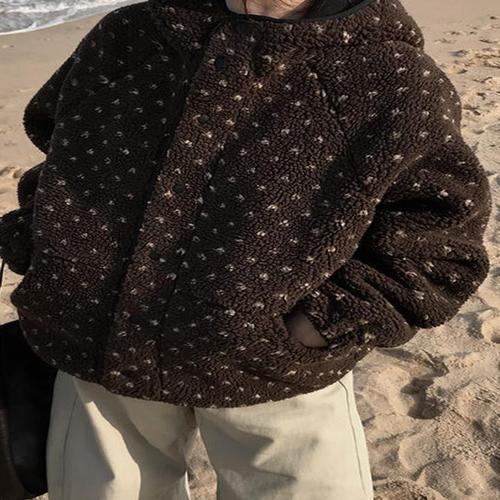 메리앤유 뽀글이 도트 양털 누빔 안감 집업 점퍼 자켓