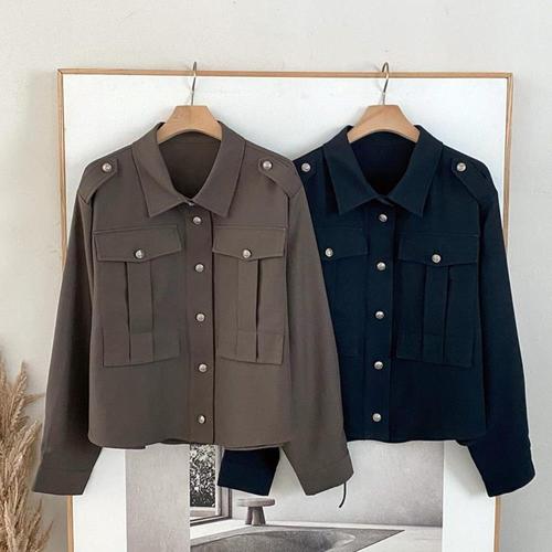 [다잇템_패션]여성 어깨견장 버튼 베이직 주머니 남방 자켓