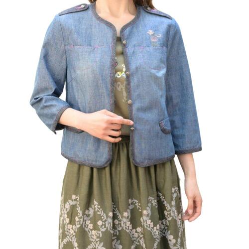 [비꼴리끄]어깨 견장 칠부소매 숏데님 자켓
