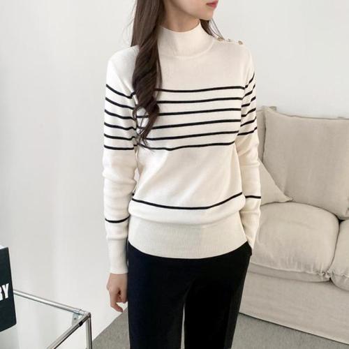 [옷자락]여자 어깨견장 단추 스프라이트 슬림핏 반목 니트