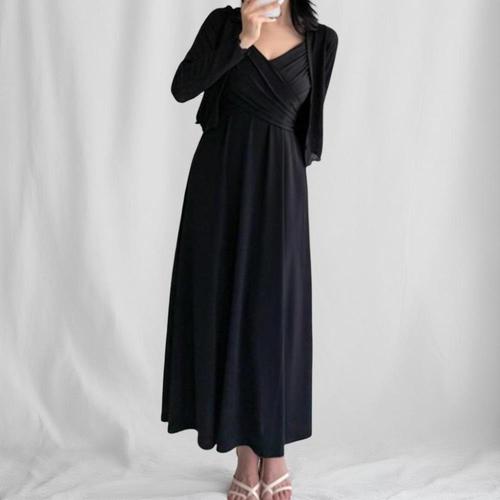 |KCO56D7|여성 바스트 꼬임 스트랩 어깨끈 플레어 롱 원피스
