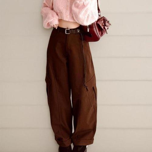 [신상오픈런]여성 캐주얼 배기핏 롤업 포켓 벨트 카고 바지