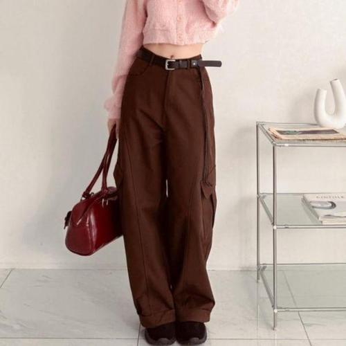 [신상오픈런]여성용 캐주얼 벨트 와이드핏 컬러 면 팬츠