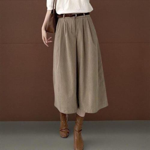 [신상오픈런]여성 핀턱 와이드 벨트 골덴 8부 바지 가을용