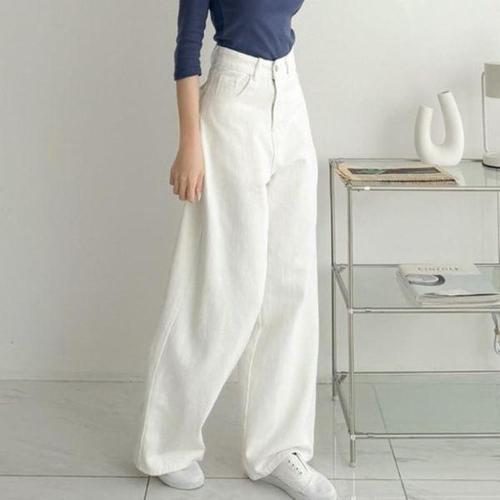 [신상오픈런]여성용 컬러 면 와이드핏 백라인 벨트 바지