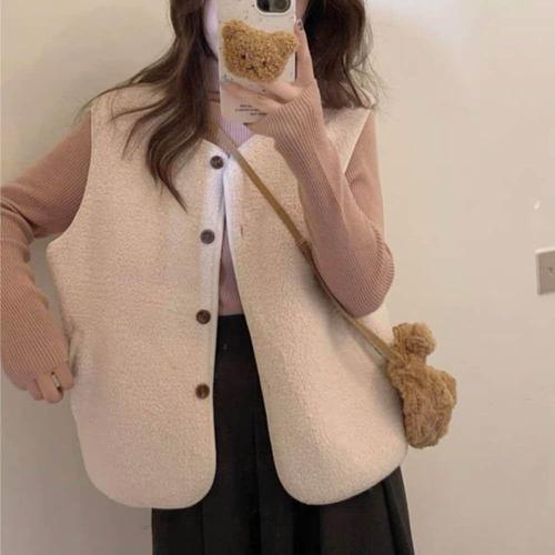 여성 양털 조끼 보온 뽀글이 겨울 방한 3color