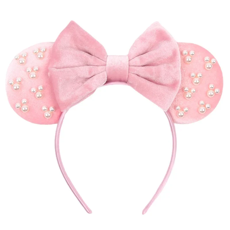 디즈니 진주 미키 헤어 후프, 어린이 장식 미키 모자, 놀이 공원 장식 헤어 액세서리, 활 헤어 후프