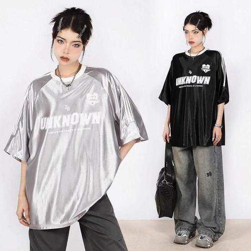 [셀러허브_여성트랜드패션]라운드 캐주얼 언노운트랙티 박시 블록코어룩 반팔