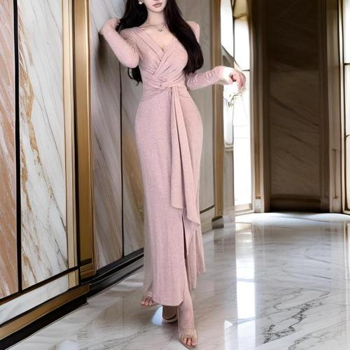 [다잇템]여자 언발 롱 V넥 랩 스트랩 원피스