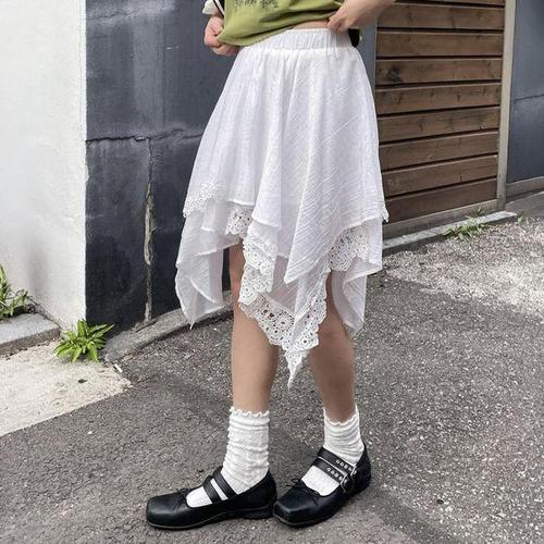 [옷자락]여자 발레코어 로맨틱 레이스 언발 스커트