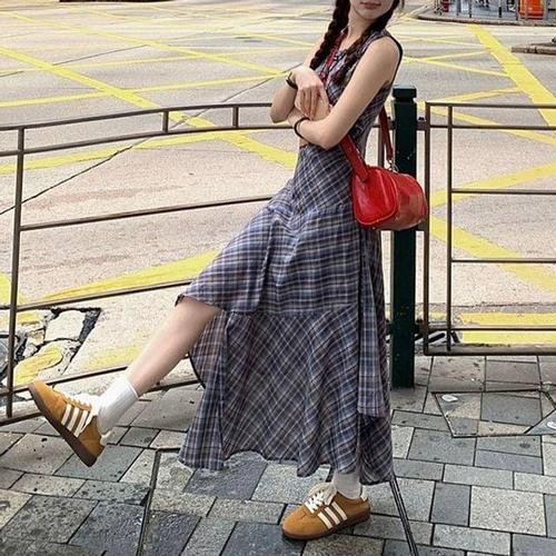 이쁘다요 체크 롱 스커트 나시 언발 여름 원피스 WFLMPO3