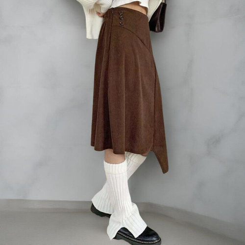 [옷자락] 여성 버튼 언발란스 포인트 코듀로이 미디 치마