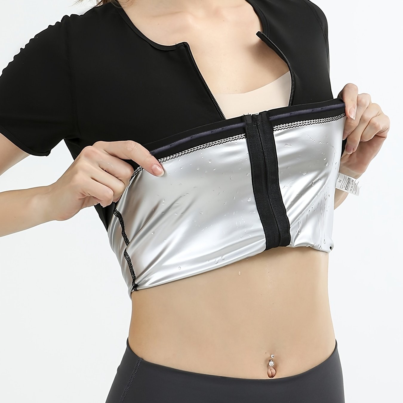 TEMU 여성용 반팔 운동 셔츠, 허리 라인을 잡아주고 땀을 흘리는 효과를 위한 디자인
