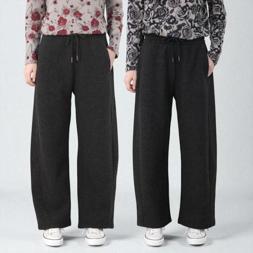 [에이치플러스몰]겨울 여성 모던 와이드 밴딩 팬츠 기모 중년 엄마 통바지