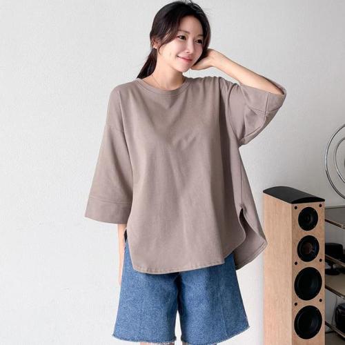 여성 엉덩이커버 컷오프 라운드 언발 티셔츠