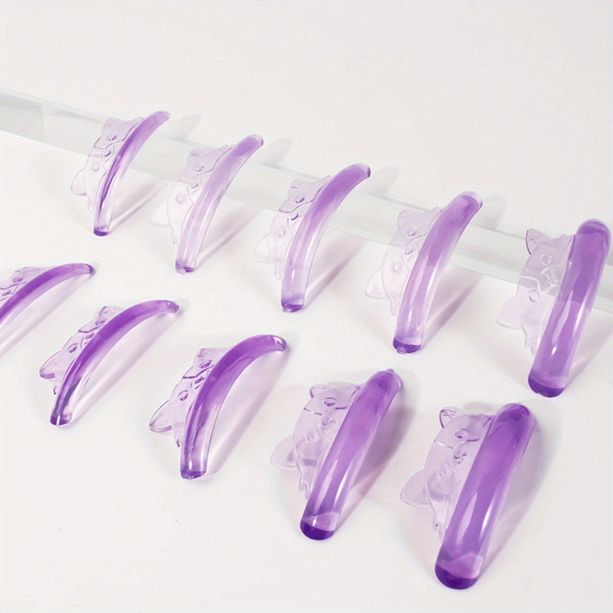 TEMU 2024 신제품 귀여운 곰돌이 자가 접착 속눈썹 리프트 패드 10개입 (5가지 사이즈) - 속눈썹 펌 컬러, 부드러운 리프팅 롤러, 세척 및 재사용 가능, 퍼플