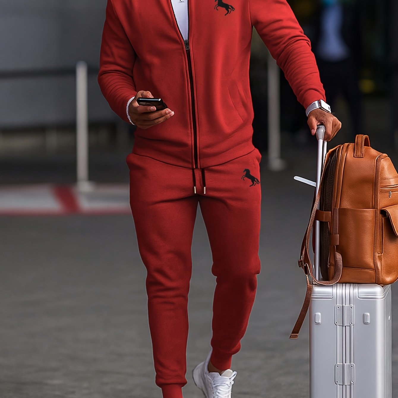 TEMU 남성용 봄/가을 패션 프린팅 아웃도어 캐주얼 스포츠 자켓 & 팬츠 세트