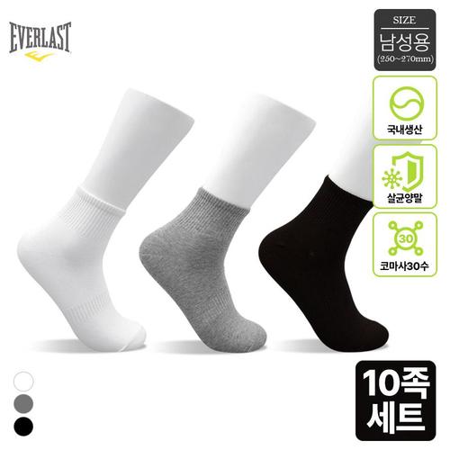 에버라스트 국내생산 남성 코마사 30수 발목양말 10켤레세트 250-270mm Bon-2587s