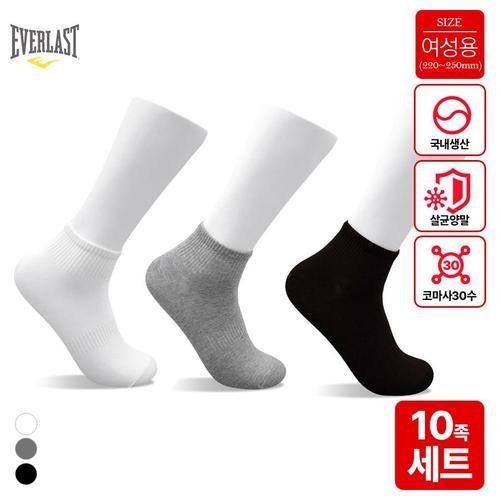 에버라스트 국내생산 여성 코마사 30수 스니커즈양말 10켤레세트 220-250mm Bon-2591s