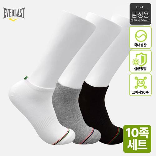 에버라스트 국내생산 남성 코마사 30수 스니커즈양말 10켤레세트 250-270mm Bon-2588s