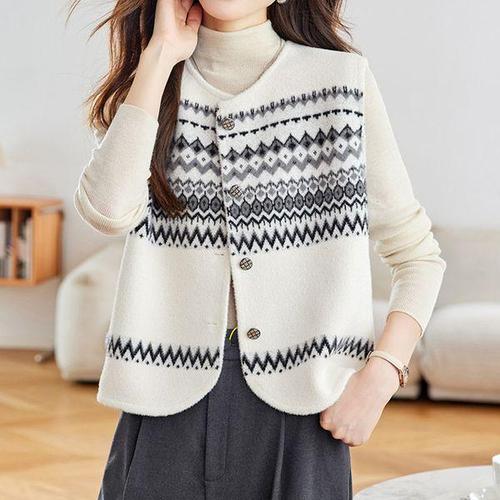 [블랙퀸][블랙퀸] 레트로 에스닉 자카드 니트 조끼 blk004430