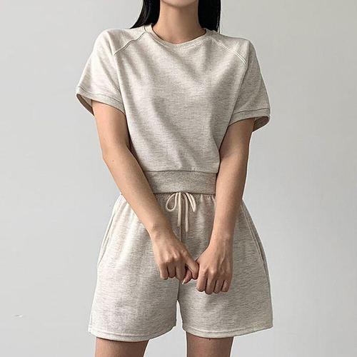 [에어플레인]무지 나그랑 크롭 반팔 3부 반바지 세트