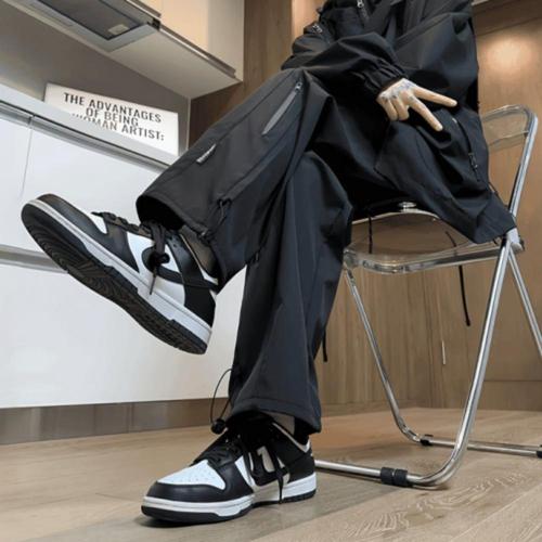 남자 테크웨어 프론트 지퍼 와이드 나일론 팬츠