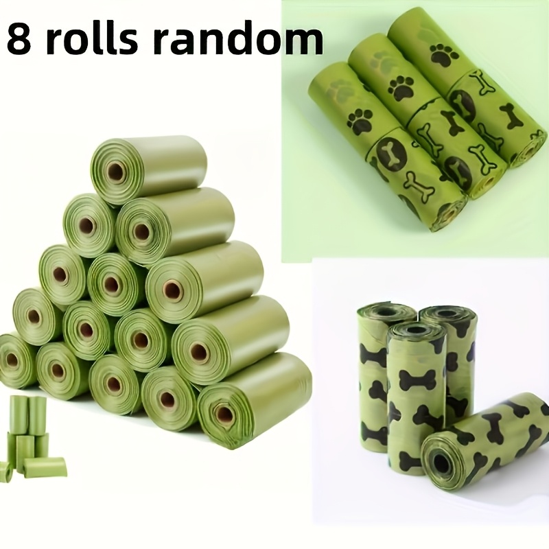 TEMU 애완동물 배변 수거기, 완전 분해성 고양이 배변 쓰레기 일회용 고양이 모래 스크루퍼 애완견 배변 삽 데스크탑 소형 냄새 방지 - 향상된 탈취 포뮬러, 휴일/생일 선물로 적합, 두꺼운 플라스틱 애완동물 배변 봉투 120개/8롤