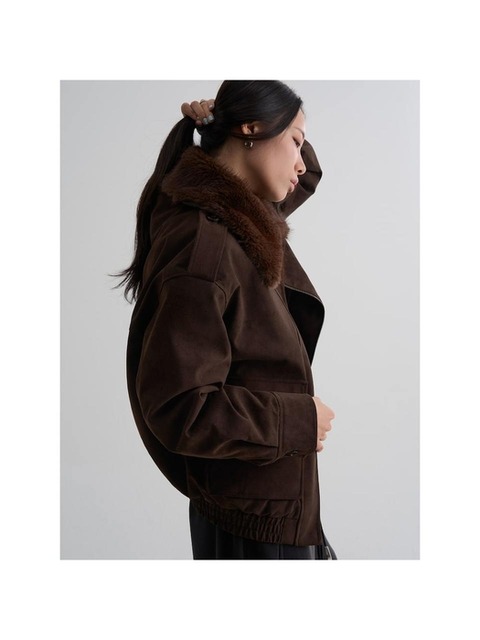 [에잇세컨즈] 디테처블 퍼칼라 스웨이드 블루종 브라운 (125Y3ZMQ7D)