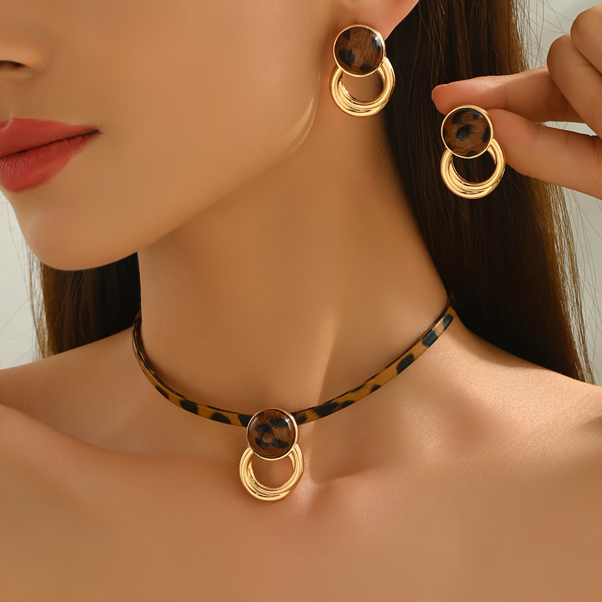TEMU 여성을 위한 가을/겨울 우아한 귀걸이 + 목걸이 세트 2개. 패셔너블한 스타일의 프린트 기하학적 버드스터드, 홀로우 불규칙 펜던트, 코드 디자인. 데일리 웨어, 출퇴근, 파티, 축제 선물에 다용도로 활용 가능