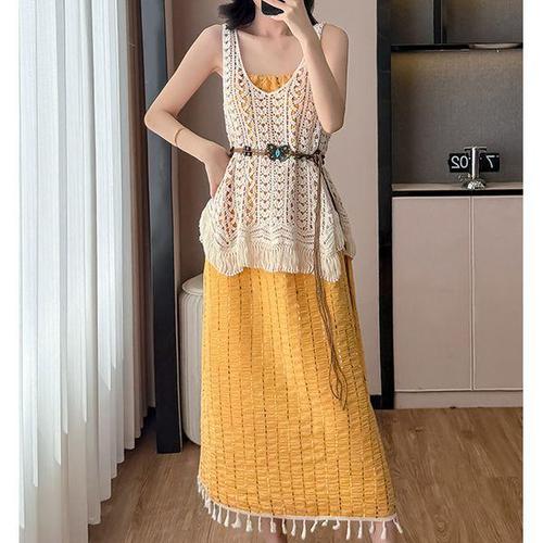 제로투올샵2 / 프렌치 무지 끈나시 롱 원피스 여성용 라이트옐로우 S