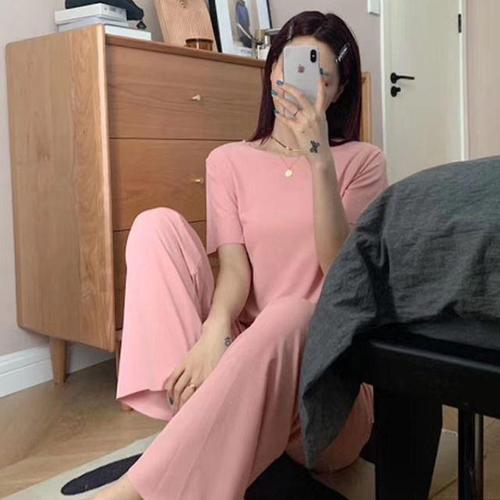 [다잇템]여성 라운지웨어 코튼 와이드팬츠 티셔츠 세트