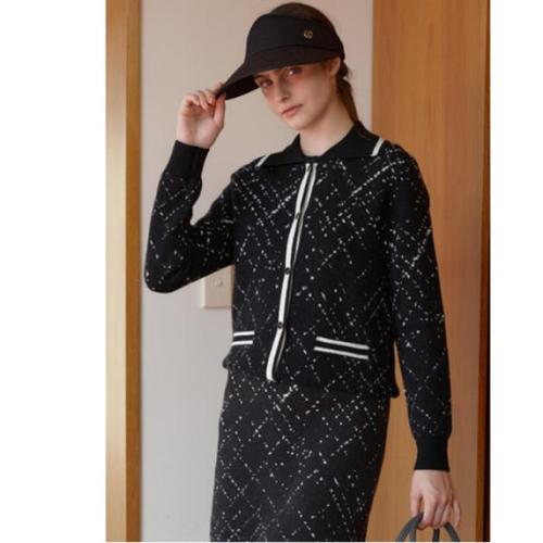 [엘르골프]여성 에리 포인트 버튼 가디건,치마 (SET) 6K-63742-199_US