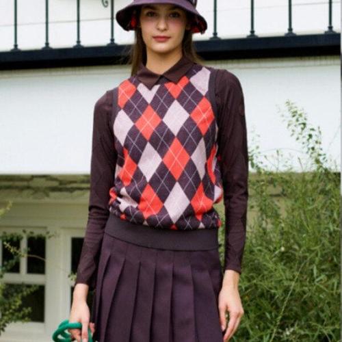 [엘르골프]엘르골프-아가일패턴 포인트 플리츠 스커트-6J61852._IC