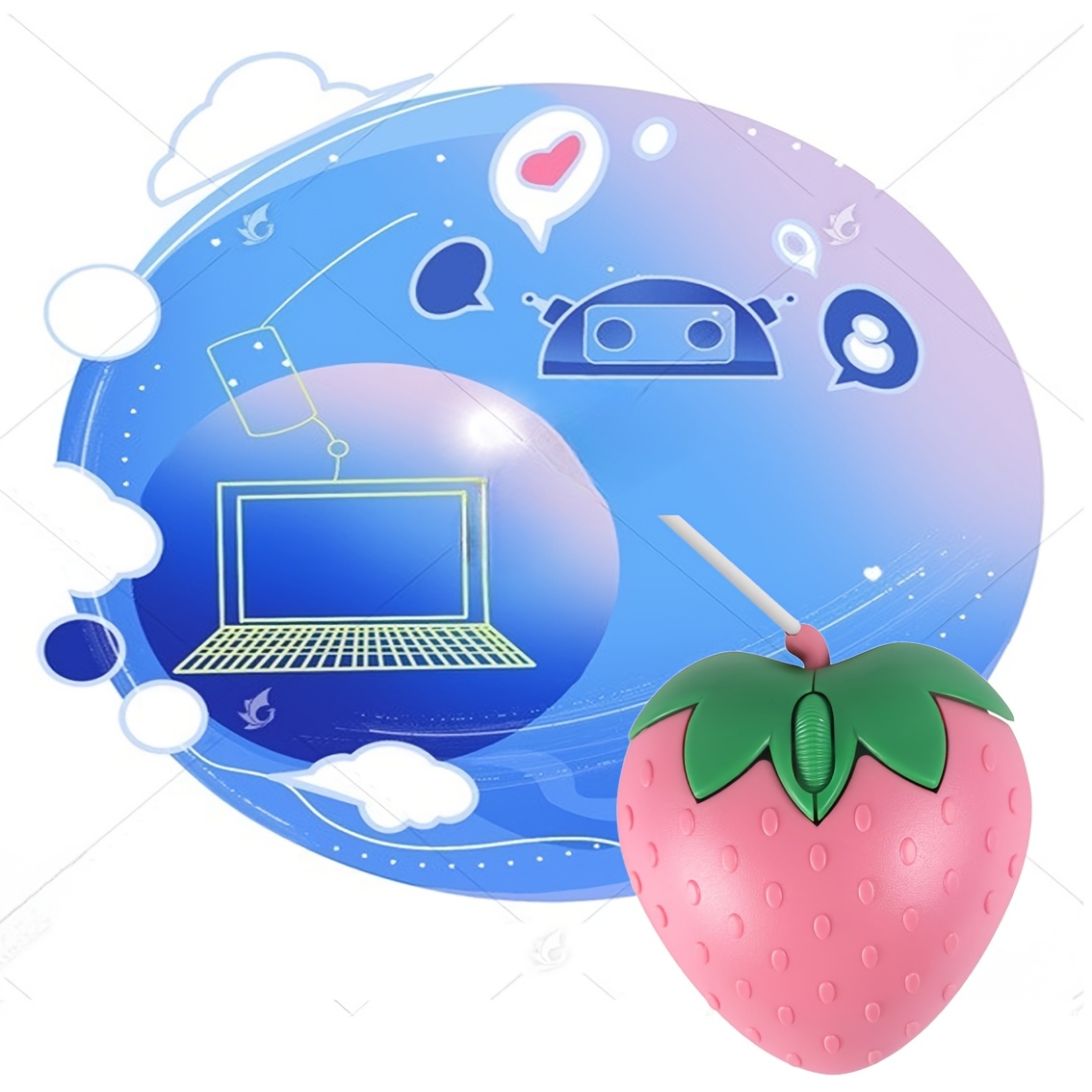 TEMU 3버튼 1200DPI 딸기 소형 USB 광선 전사 무선 마우스 | 양손잡이, 만화 테마, 플라스틱, 노트북, MacBook, Mac용, 휴대용, 어린이 선물
