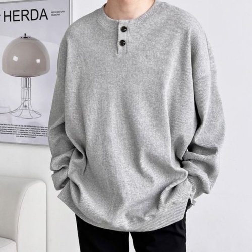 [모로엠]심플 남자 데일리 웨어 빅사이즈 버튼 골지 맨투맨 DMS-TSA-Q4152086