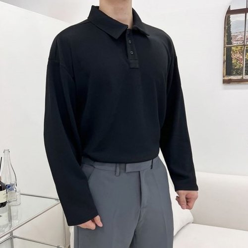 [모로엠]남자 캐주얼 데일리 머슬핏 카라넥 단추 긴팔티 DMS-TSA-Q4263061