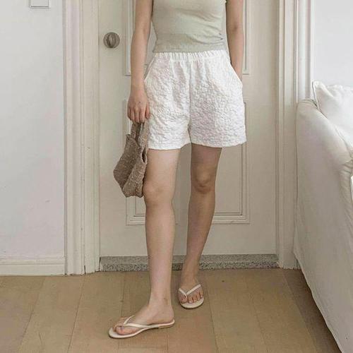 [옷자락]여성 썸머 엠보 볼륨 사이드포켓 밴딩 숏 팬츠