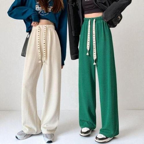 [셀러허브_여성트랜드패션]와이드 SD-230202 엠보 텍스쳐 밴딩 라체 팬츠 통바지