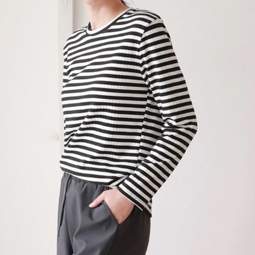 [옷자락]여성 일상용 스트라이프 엠보 라운드 긴팔티
