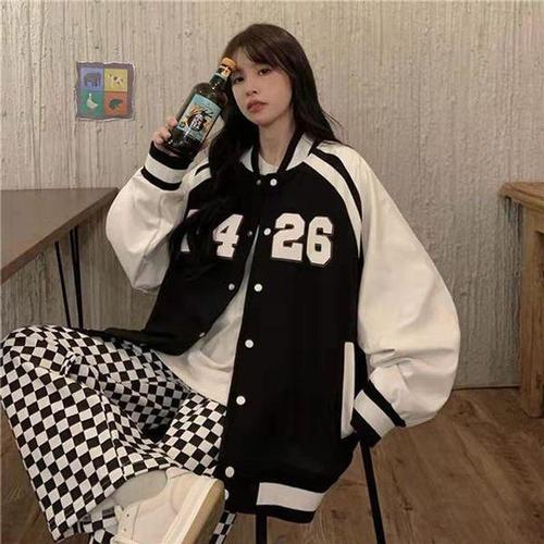 TEMU SunburstWonder 여성 가을 겨울 야구점퍼 도톰 학생 빈티지 오버핏