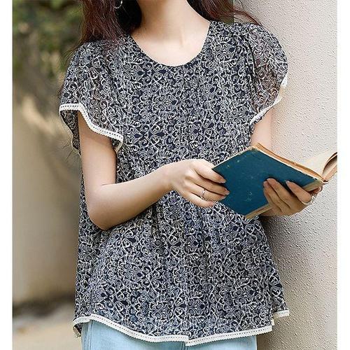 [패션시그널]레이스라인엣지 라운드넥 블라우스 B436CE