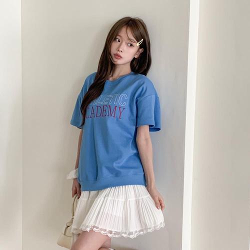 [옷자락] 여자 봄신상 여름 반팔 아카데미 자수 맨투맨 티셔츠