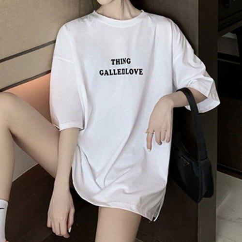 [오너클랜]인기상품 여성용 데일리 캐주얼 롱 티셔츠 반팔 여름 외출 맨투맨 디자인 셔츠 [WFLKZSU_260304]