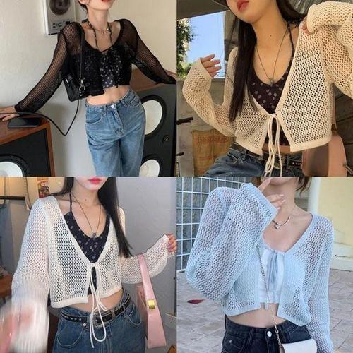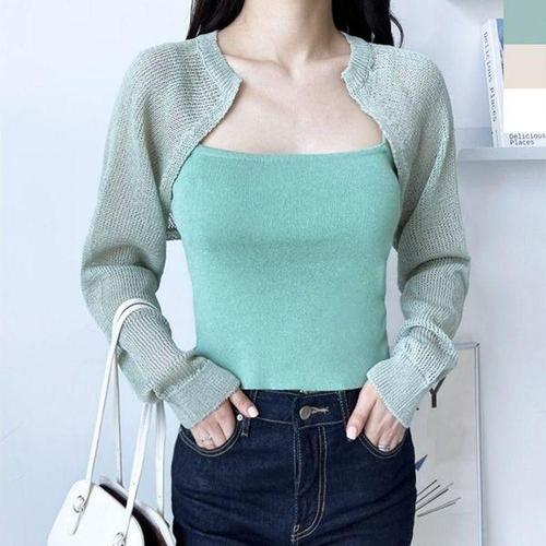 [에이치플러스몰]가벼운 가디건 여성 그물 시원한 니트 볼레로 여름