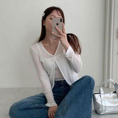 [에이치플러스몰]여성 여름 데일리 볼레로 시스루 긴팔 가디건